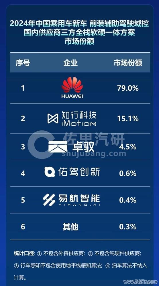 从具体数据来看,华为在2024年中国乘用车新车前装辅助驾驶域控市场中的份额达到79.0%,遥遥领先于其他厂商,稳居行业首位;知行科技以15.1%的市场份额位列第二;卓驭科技、佑驾创新、易航智能等企业也占据了一定比例配资网可,但整体份额相对较小。